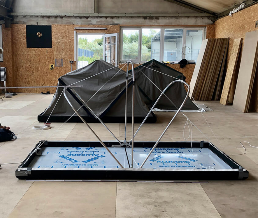 Our journey began in 2020, in a classic startup setting: a garage. We had a vision of what we wanted to achieve, and were ready to learn and grow. “Learning by doing” and “Trial and Error” became our guiding principles, and we embraced them wholeheartedly. We designed our first tents and quickly moved on to create another prototype, iterating through several stages, each attempt bringing new features.